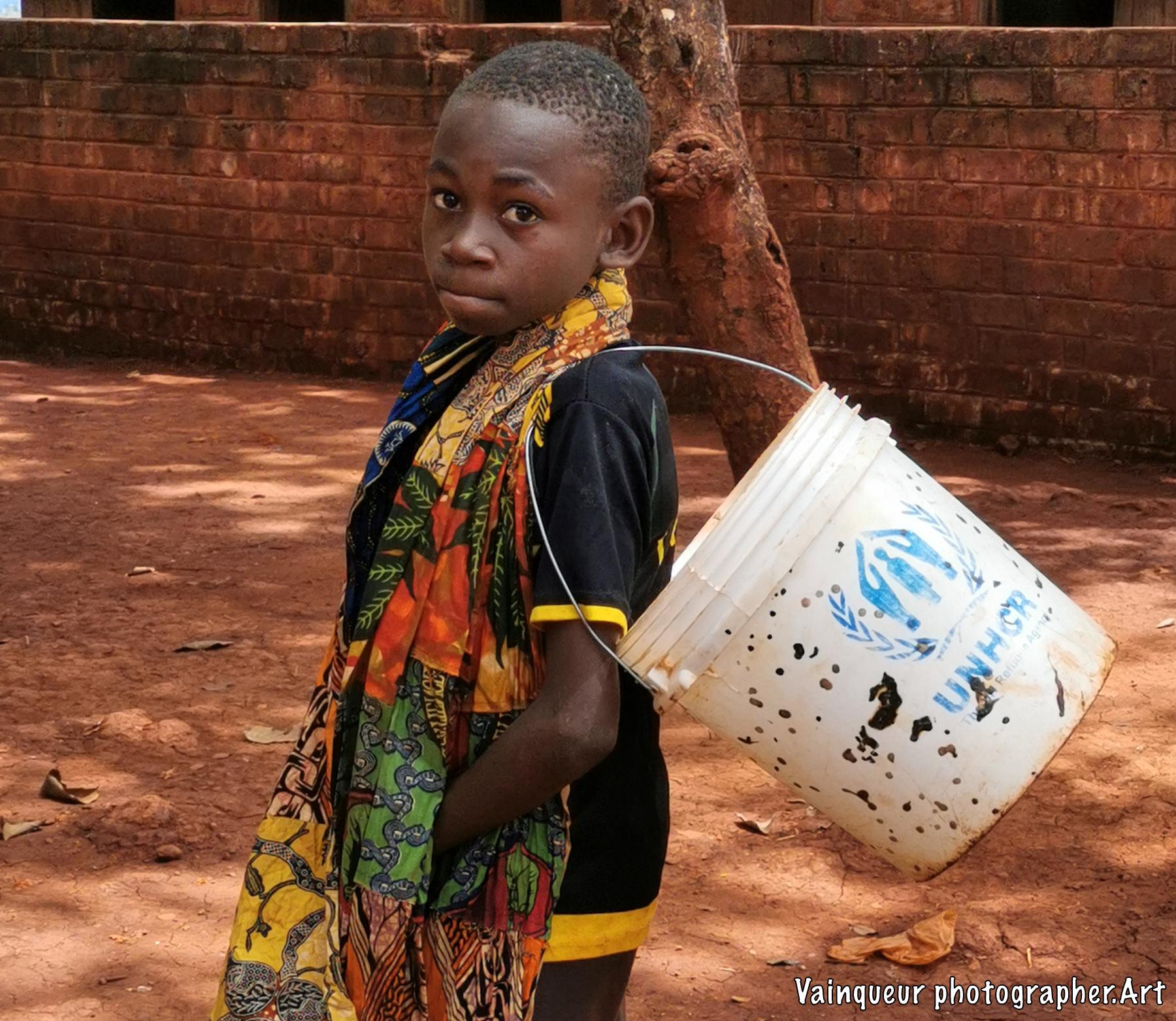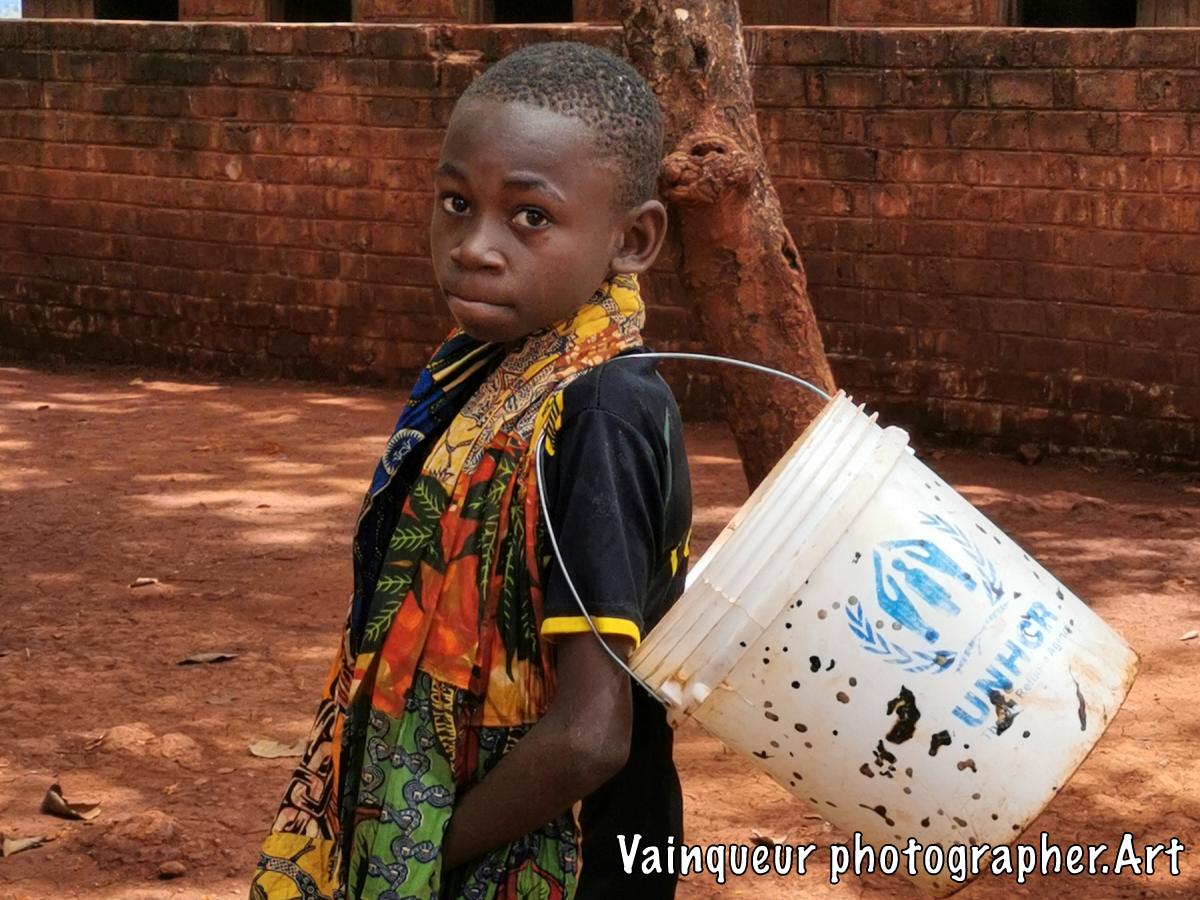 Stop for understanding the message, to our photo reports of the project during the refugee camp. At the time when we were on the place of event, we met this young boy who he is from zone 11. My intention is based on the bucket he has. I asked him the questions why such signs on the bucket, the young man did not hesitate to answer us: "I had added marks as a reference because all the buckets in the camp were almost alike and people were exchanging buckets at the tap places.."