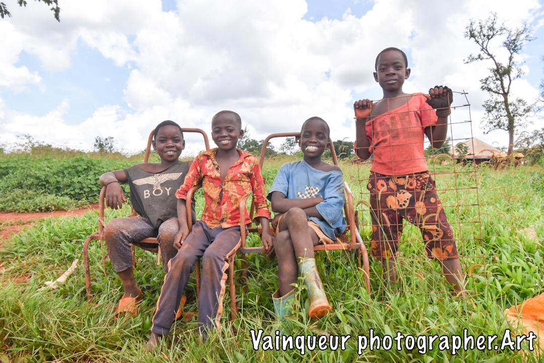 A group of children helps clear a plot of land that will soon become a family vegetable garden. After removing an abandoned piece of metal, they take a short break, revealing a natural sense of togetherness and simple joy. The scene highlights the close relationship between childhood, community work, and the environment. In this village, manually preparing the soil is an essential step before planting the vegetables that will provide an important part of the family’s food supply. The children’s involvement, far from being a burden, reflects a cultural transmission: learning through action the value of work, the importance of sharing, and the connection to the land.