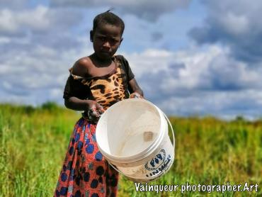 We had the chance to exchange a few words with this girl. She explains to us that her mother went to the depot to receive food and that she takes care of the maintenance of the house and other things. Her mother will find everything in good condition.
