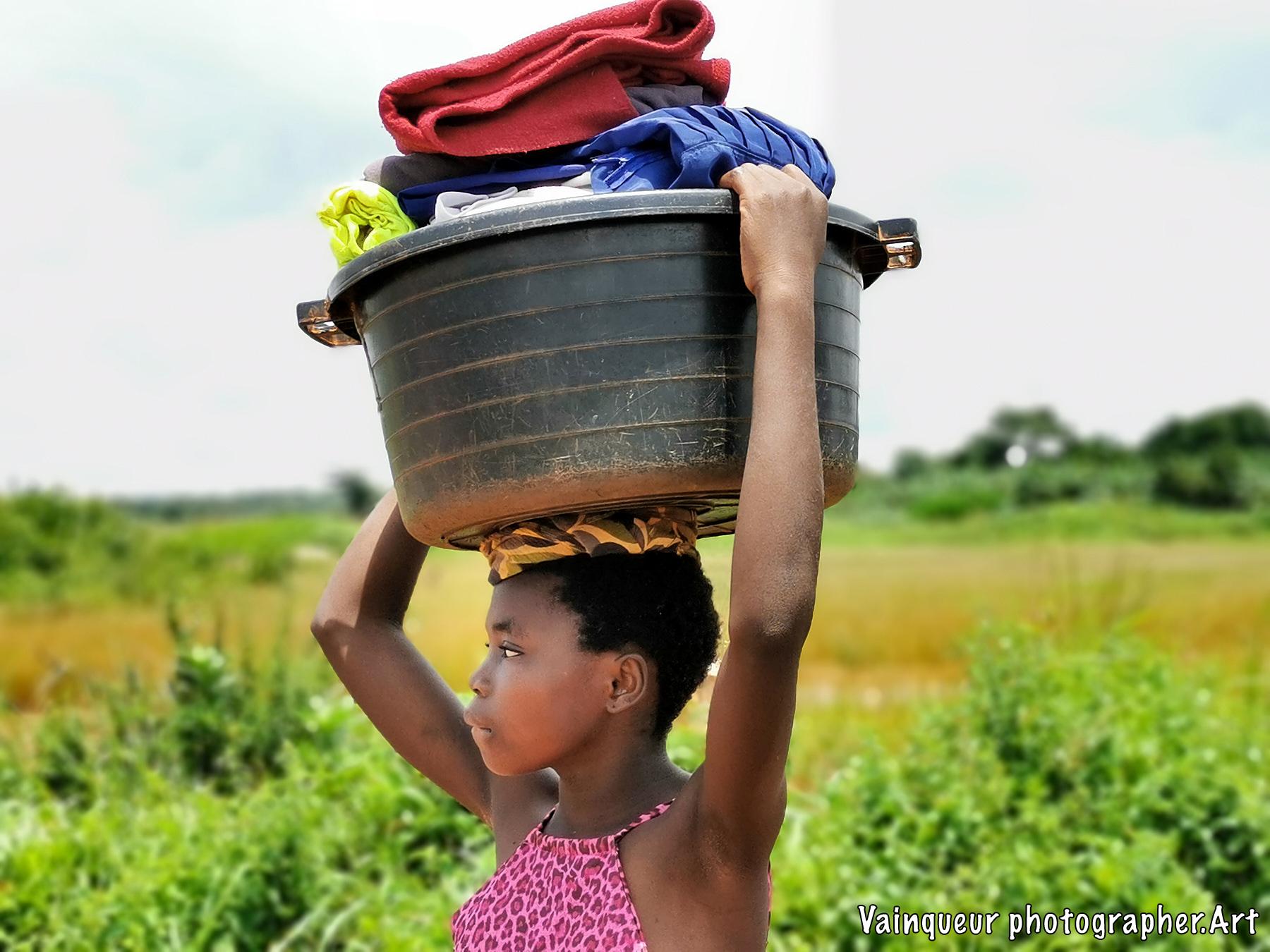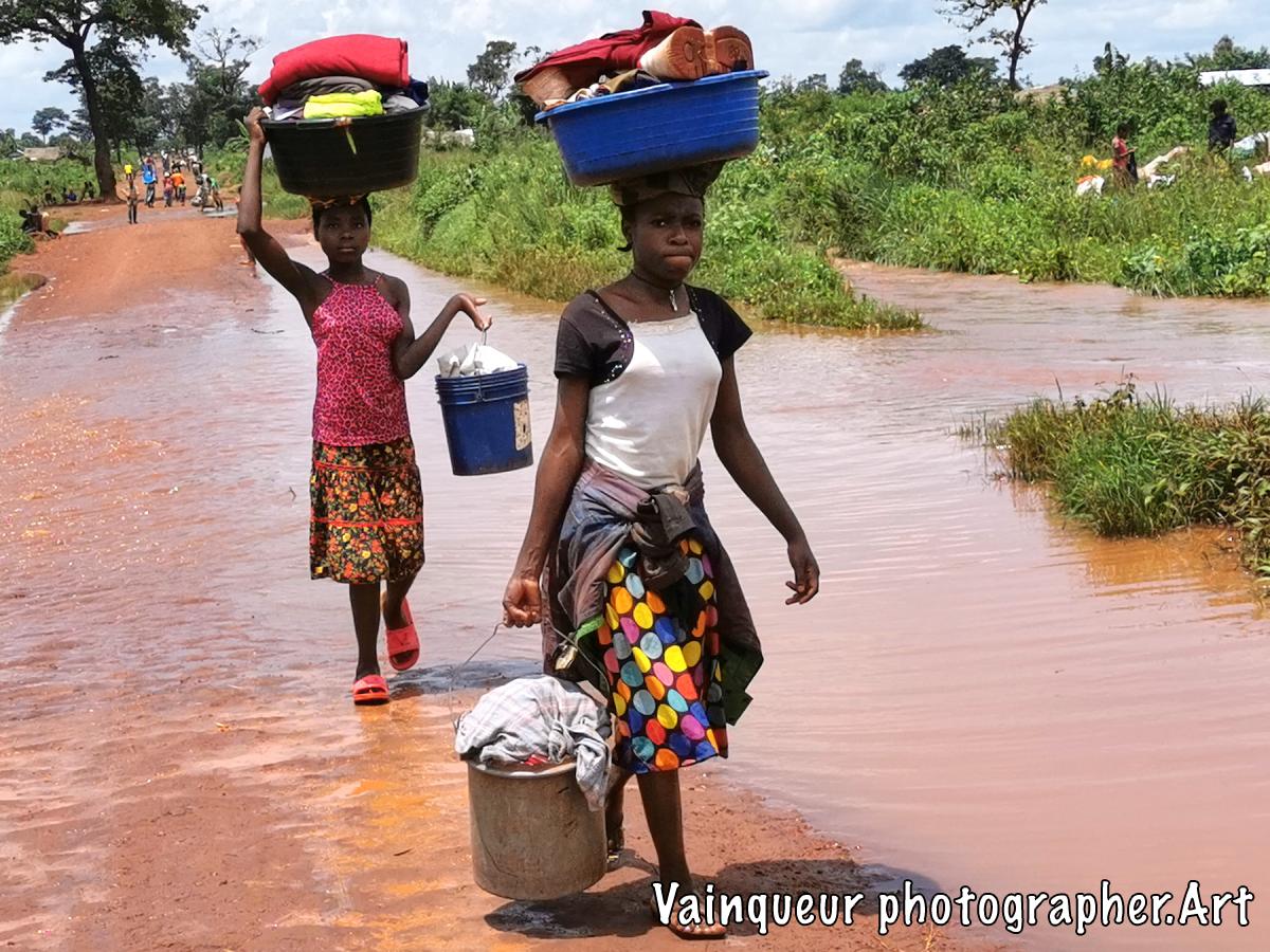 Congolese and Burundian refugees go to the river every day to wash their clothes. You can see young girls coming from the river in this photos. They told us, "We are already big girls and we have to help our brothers, our sisters and our parents in washing clothes."