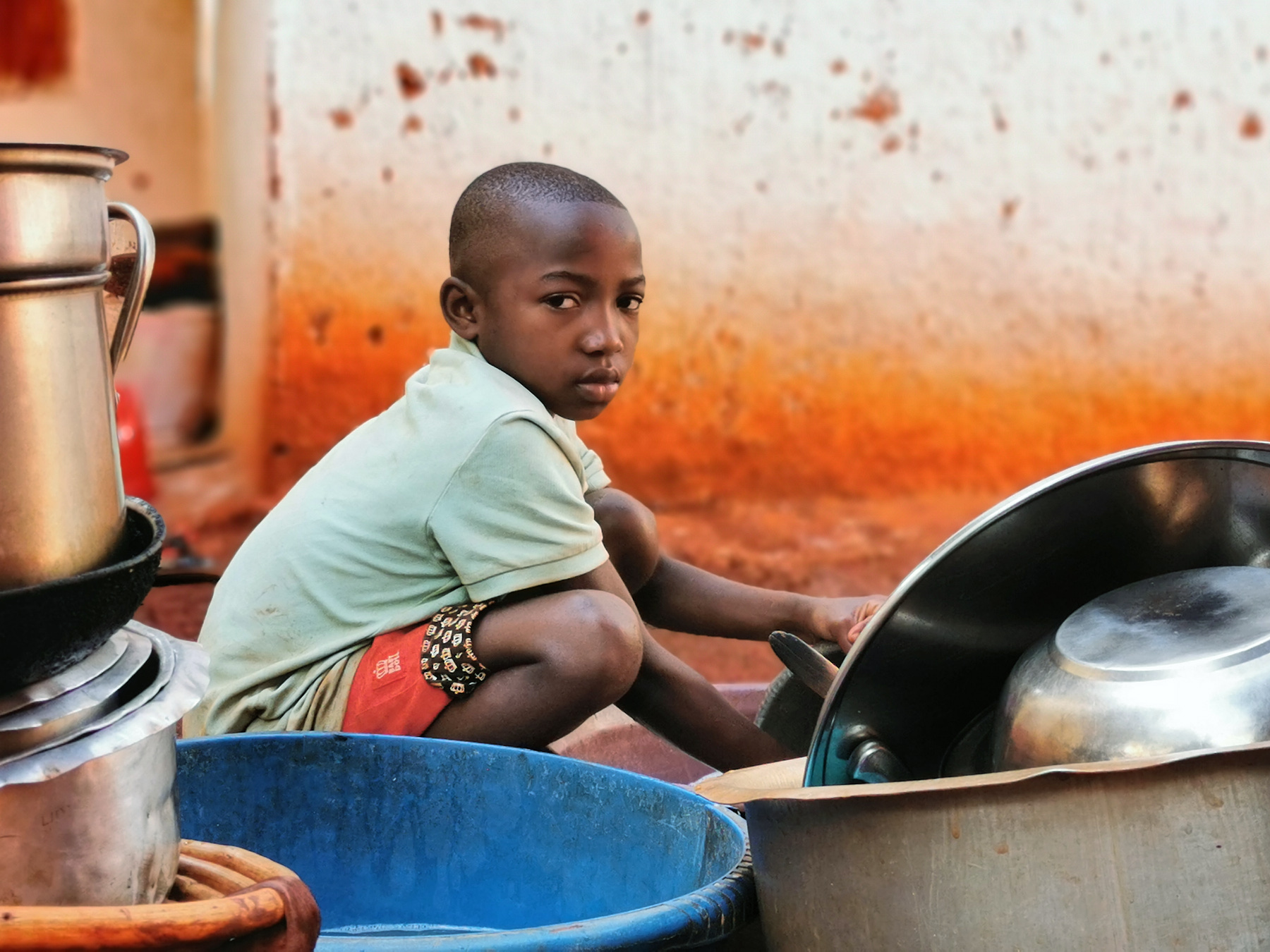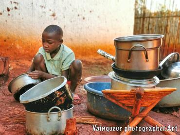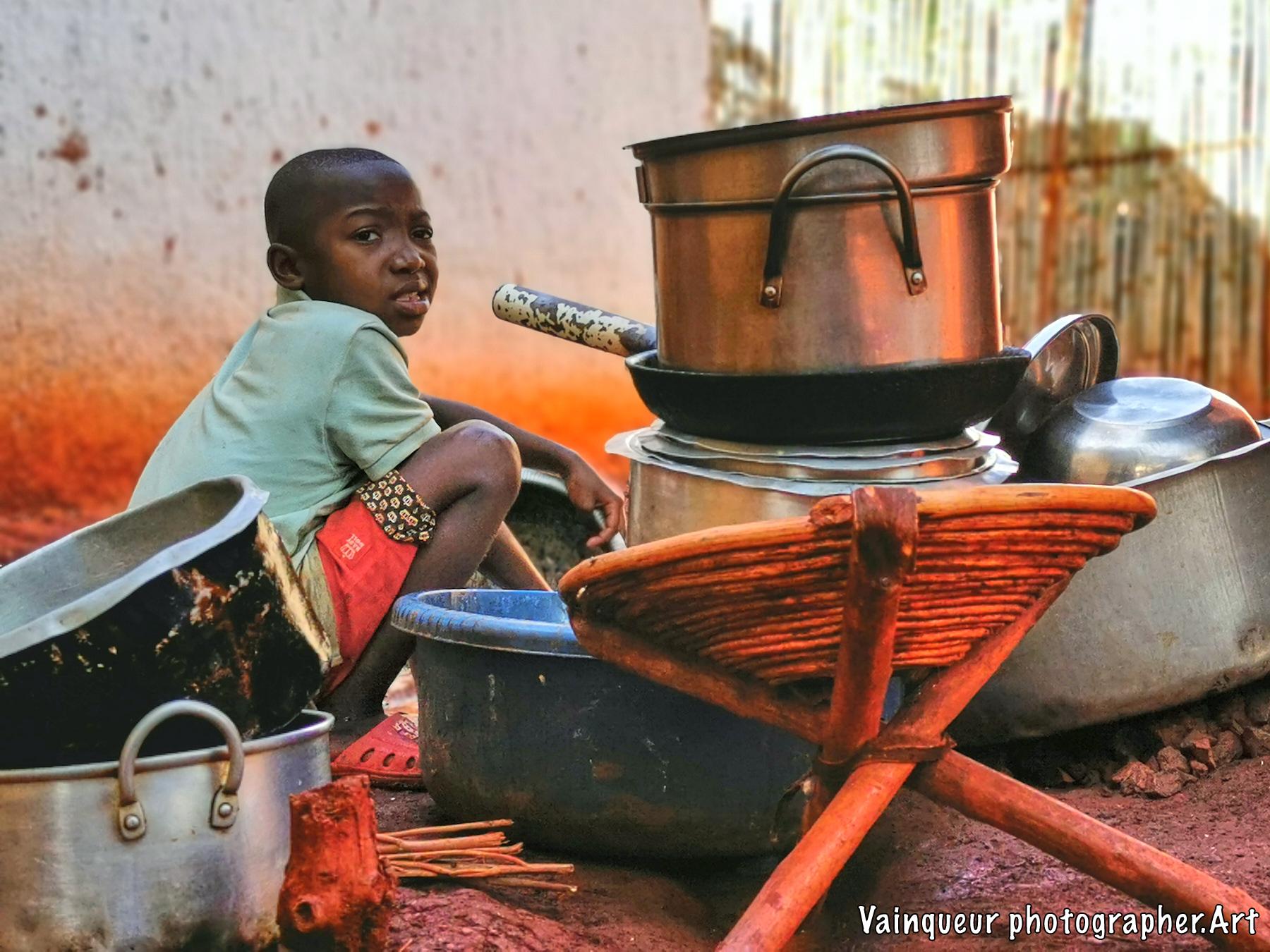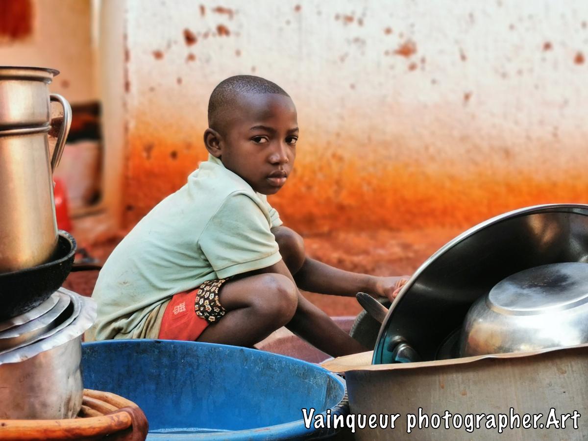 Her name is Zainabo, she is a smart girl and also brave according to her mother. What is surprising is that Zainabo is angry because her mother tells her that she has to clean all the pots before going for a walk with her friends. As she thinks herself clever she wanted to hide some saucepan to clean it later. Unfortunately, her little sister Aziza was watchful and alerted her mother. Zainabo explains to me that she will clean up in her due time because she is wanting to participate in their children's game Kunoka. Her mother obliges her because if she leaves without cleaning the pots, it will be impossible for her to do it later because the water is not available all the time and she has to prepare the food in clean pots. By saying it to his daughter: "Okey, you will play your game after cleaning but you refuse cleaning  dishes. I'm telling you, you'll eat your game at night because you like game more than cleaning our casserole, pot and pan. Do the things which you are important to you." Zainabo has finally agreed to clean all the dishes before going to play their Kunoka childish games.
