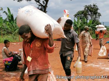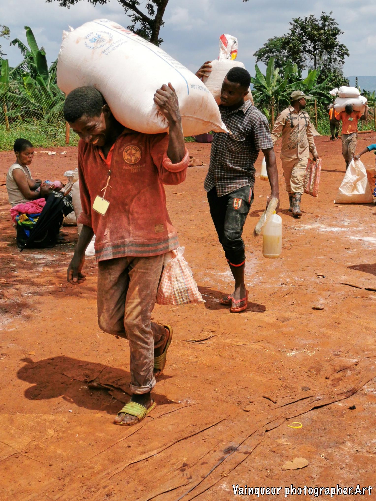 Every month, all refugees are entitled to food during their stay in the depot. There is an opportunity for some traders who exchange small amounts of beans or other good things. They make their exchange outside the deposit. There are other people who help you to take away the food from the warehouse outside the fence. If these people help you transport the package, you must motivate them with a small amount of cornmeal. Other people using bike to help someone who is live far from store, they pay money for it service. And others transport food to house from store by themself.