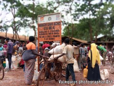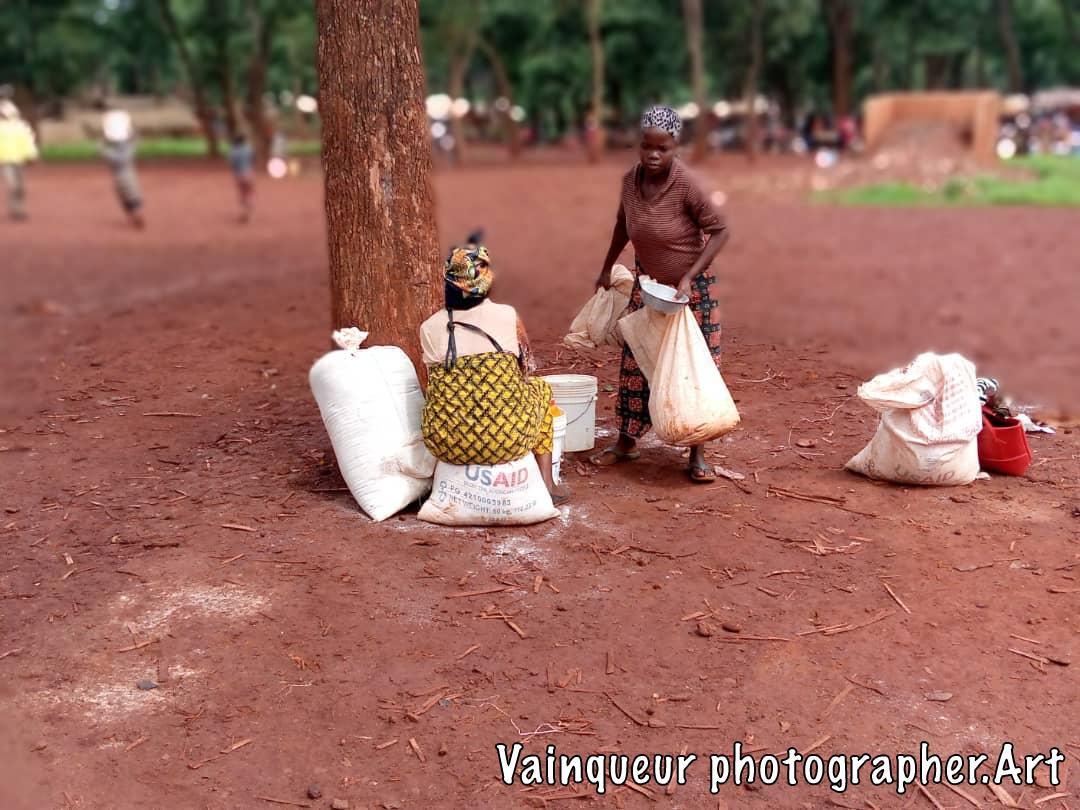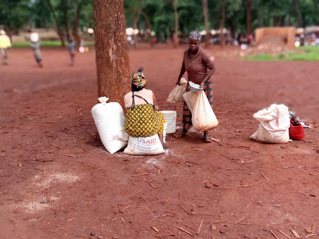 Every month all refugees receive food at the World Food Program (WFP) depot in collaboration with World Vision. 10 kg of flour corn with 3 kilos of beans, half a liter of oil, a quantity of salt and masoso for each refugee.