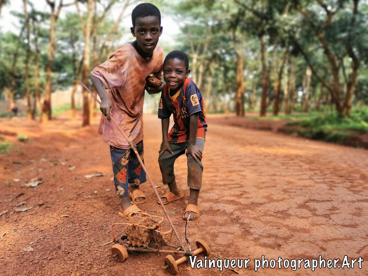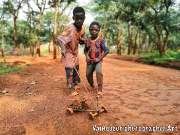 This Saturday in Zone 2, two young children are having fun at their childhood games with a toy imaging an automobile. They tell us, "We are a technician and a future mechanic. If we get a chance in America, we will become good engineers."